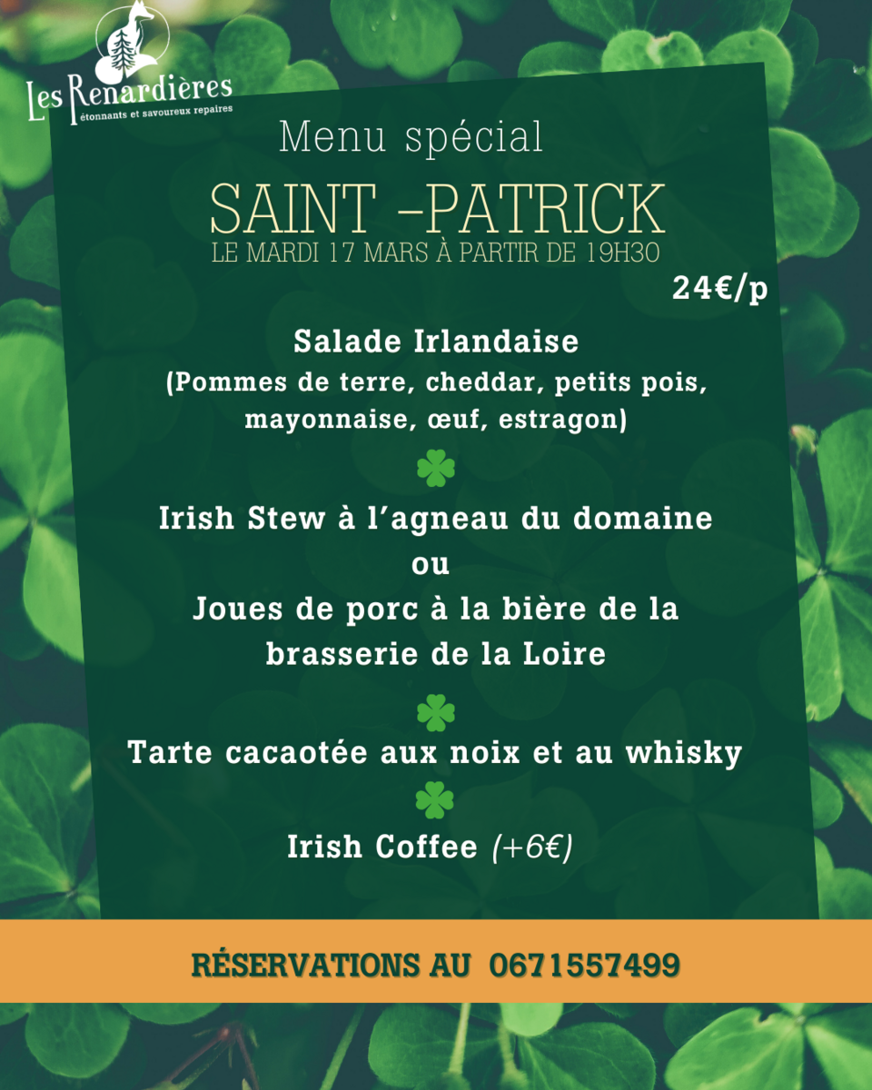 Le mardi 17 Mars, un menu spécial St Patrick mêlant les saveurs irlandaises et locales !