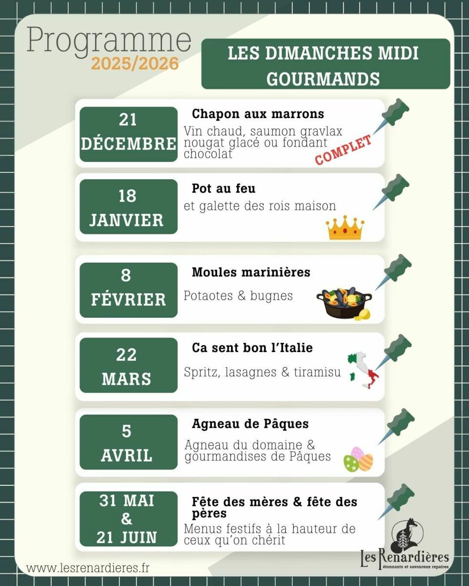 Nous vous accueillons désormais un dimanche midi par mois à thème ! Découvrez le programme ci-dessous !