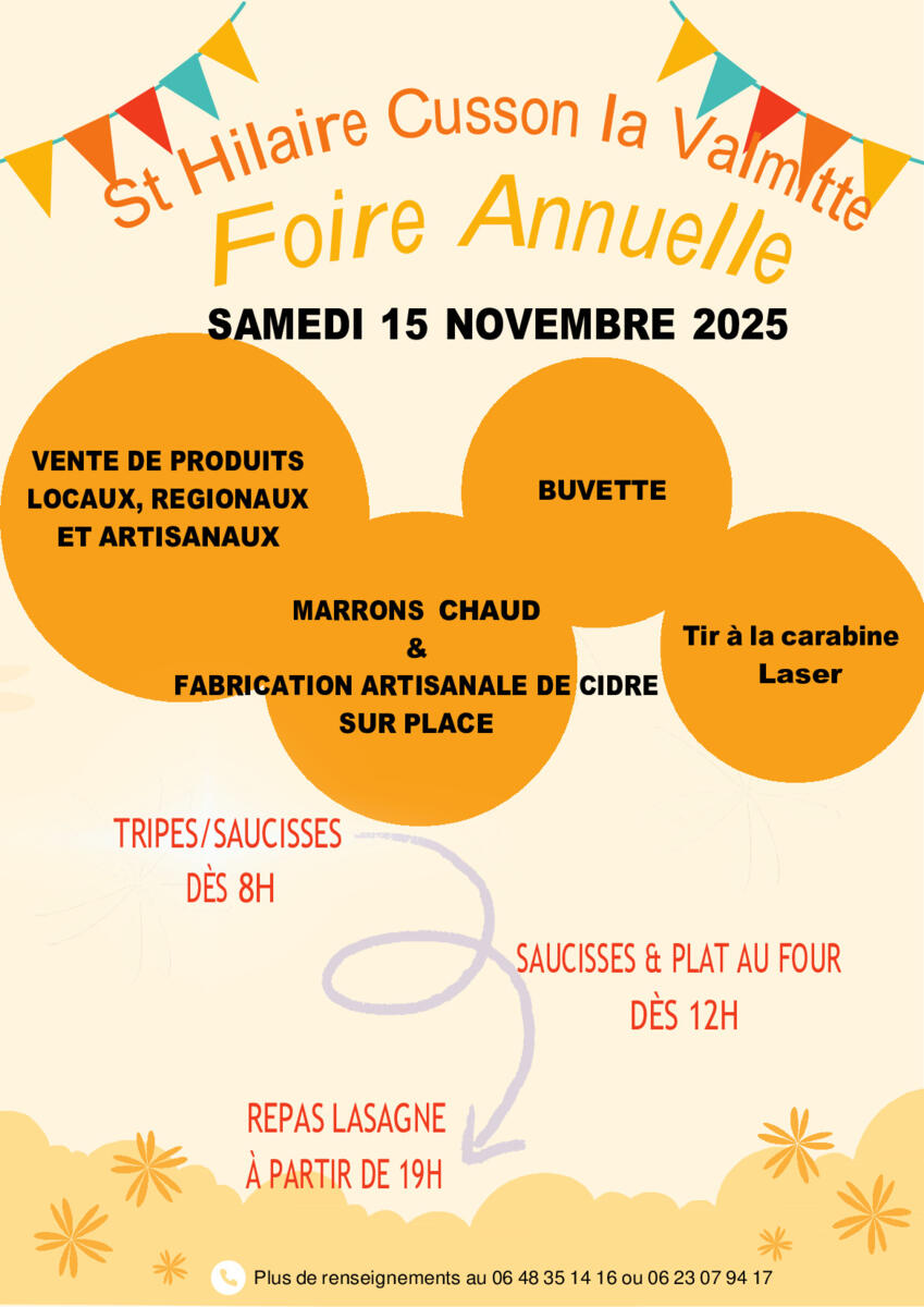 Votre mairie / Actualités / samedi 15 novembre Foire annuelle à St Hilaire Cusson La Val