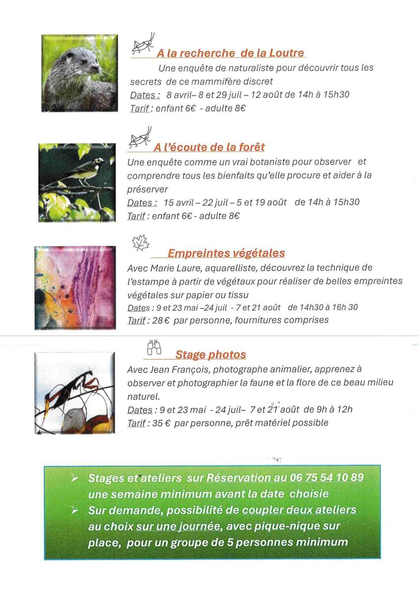 quatre animations ayant trait à la nature vous sont proposées.