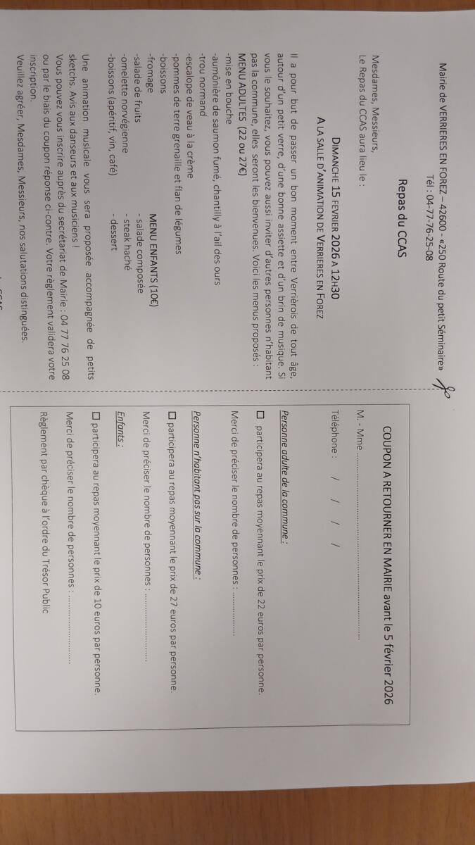 RAPPEL INSCRIPTION REPAS DU CCAS