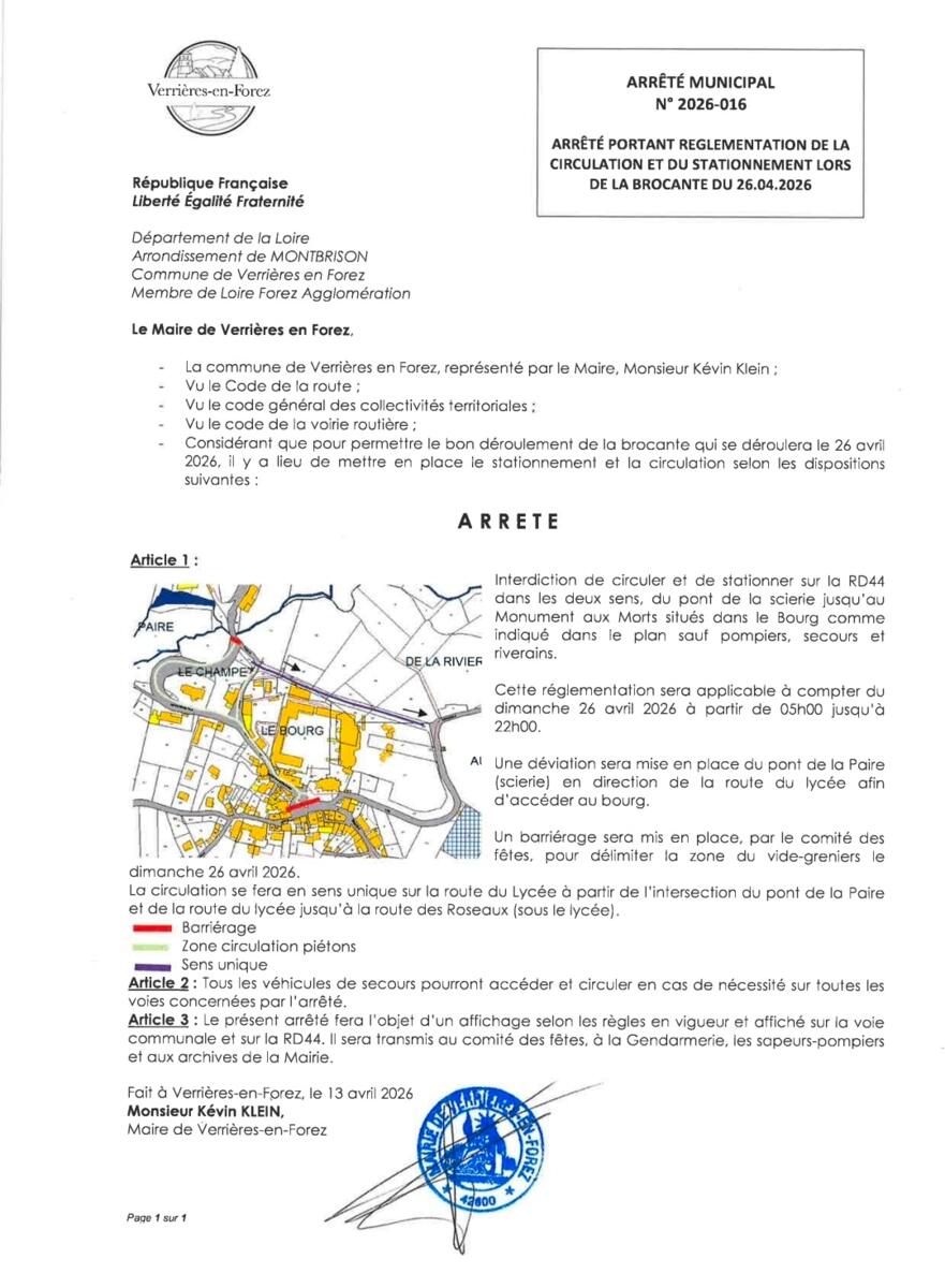 Brocante le dimanche 26 avril 17/04/2026 Le bourg du village ne sera pas accessible le dimanche 26/04.