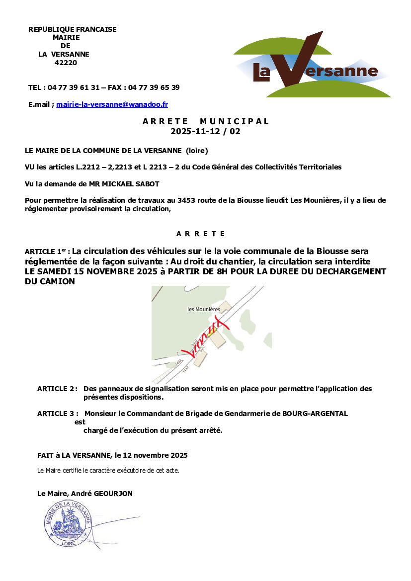 ARRETE DE CIRCULATION LES MOUNIERES 6 DECEMBRE 2025