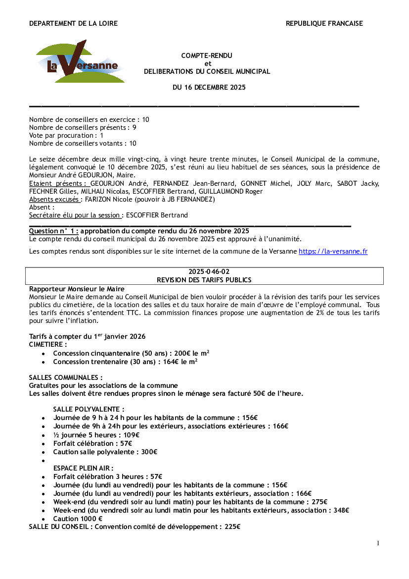 COMPTE RENDU DU CONSEIL MUNICIPAL DU 16 DECEMBRE 2025