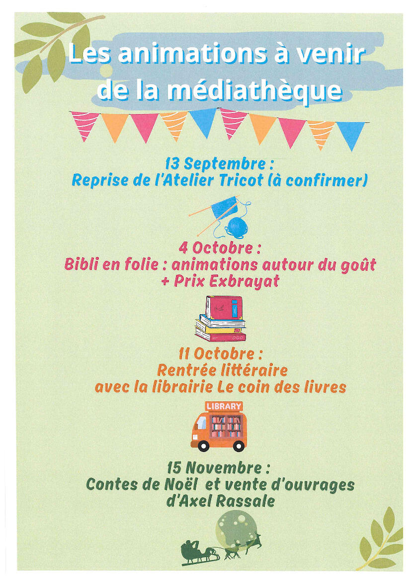 Voici le planning des animations à venir cet automne organisées par la bibliothèque