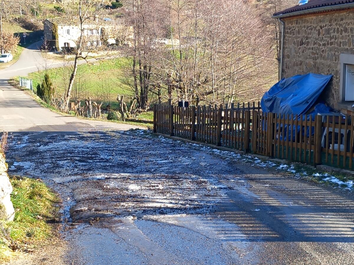 Nous avons procédé au salage du virage mais il reste verglacé. Des panneaux de signalisation ont été installés pour signaler le danger.