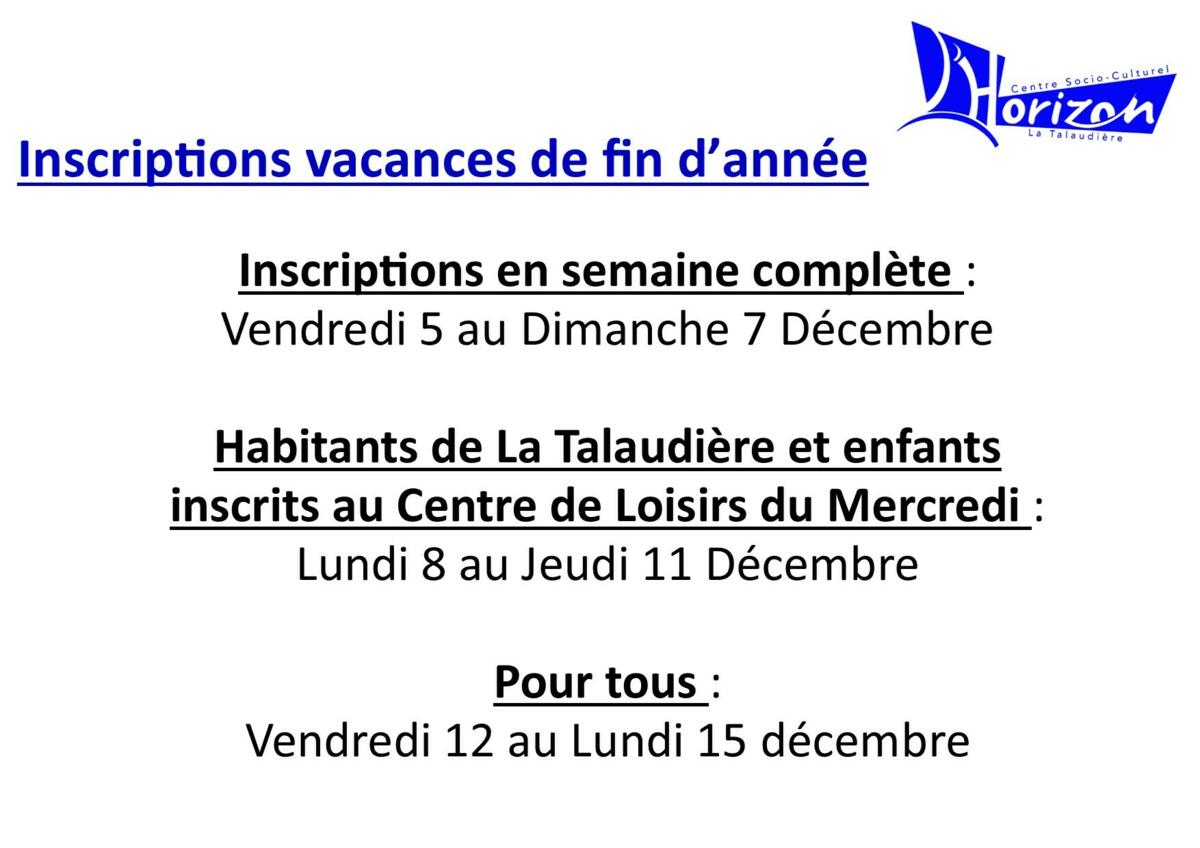 Inscriptions vacances de fin d'année 2025