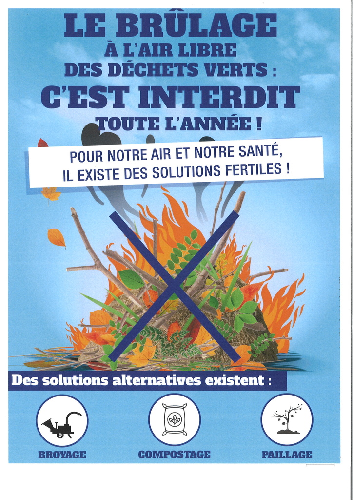 Pour rappel, le brûlage à l'air libre des déchets verts est interdit toute l'année, conformément :
