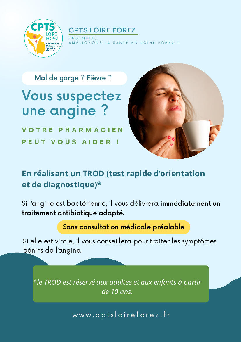 Vous trouverez ci-joint une communication relative à la prise en charge de l’angine par les pharmaciens, sans consultation médicale préalable.
