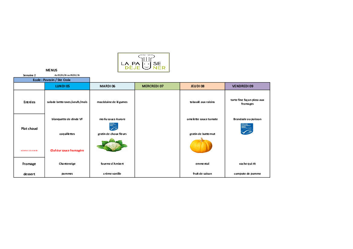 Menus de la Cantine Semaine 02