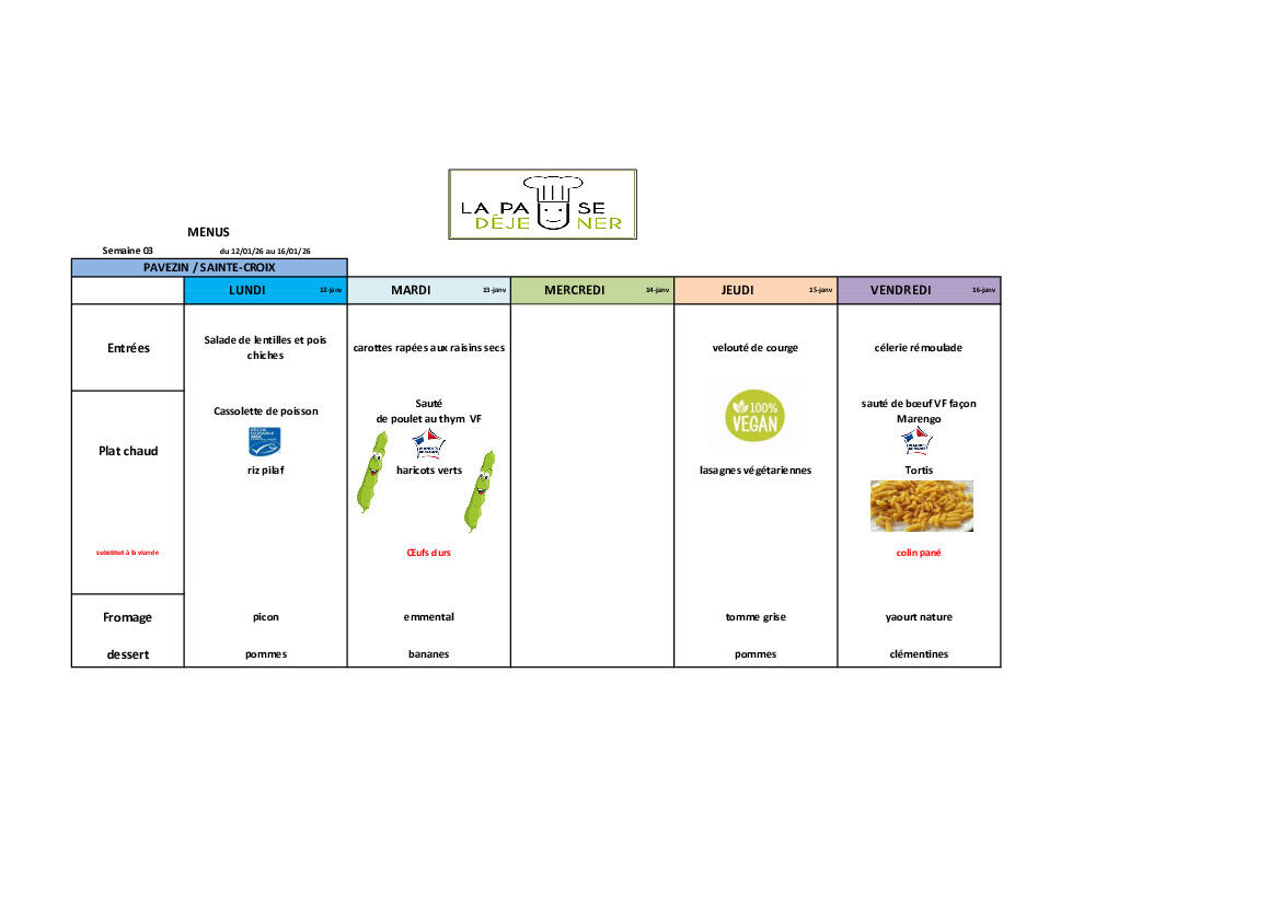 Menus Cantine Semaine 03