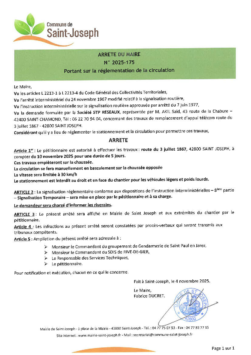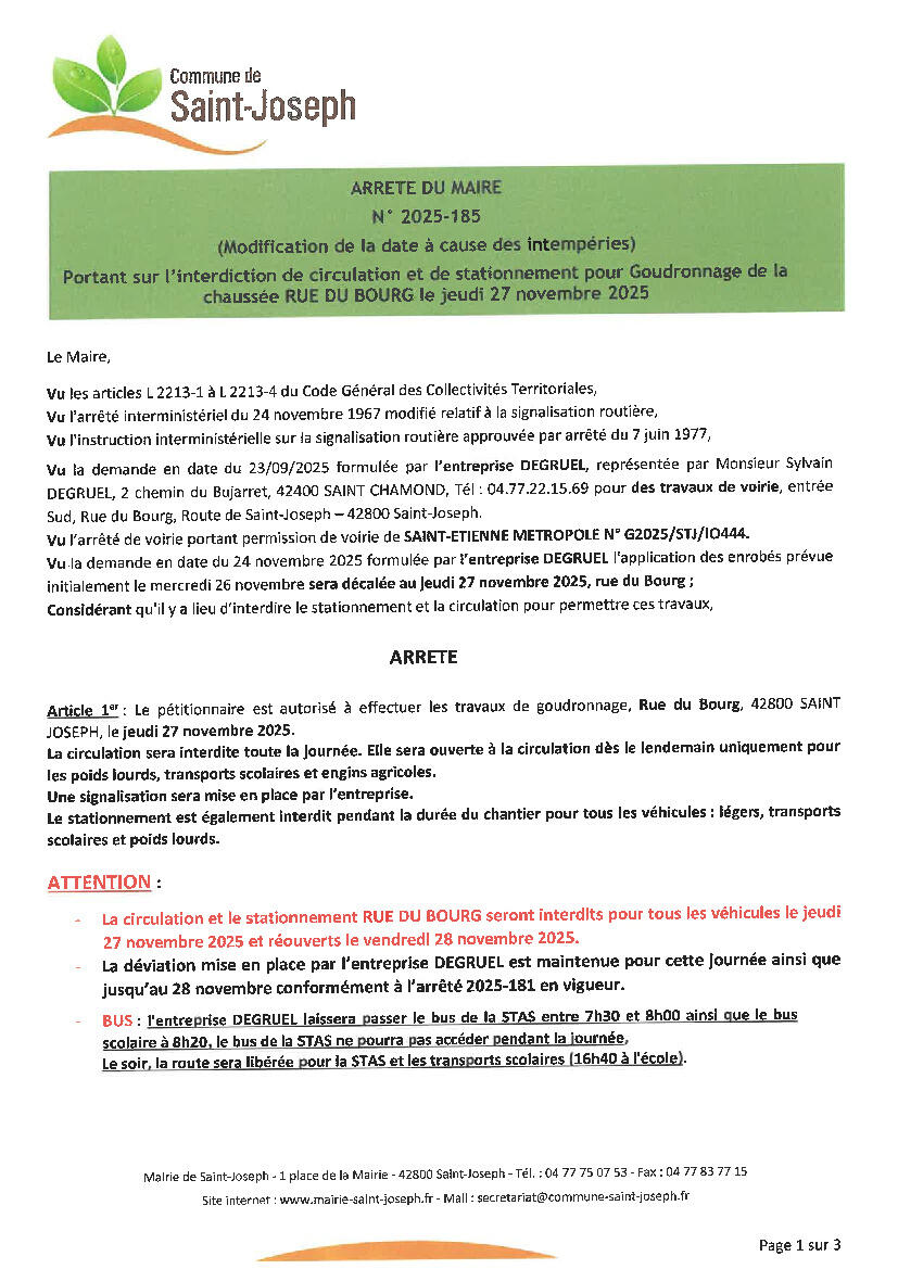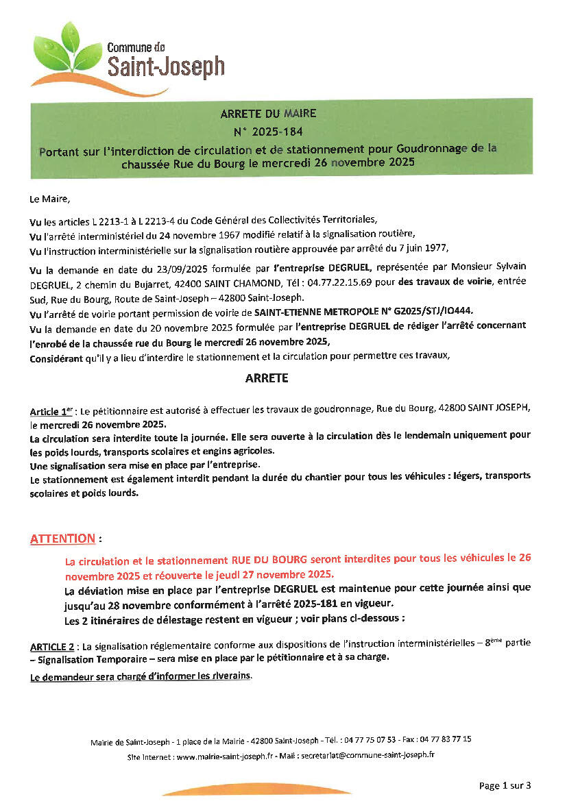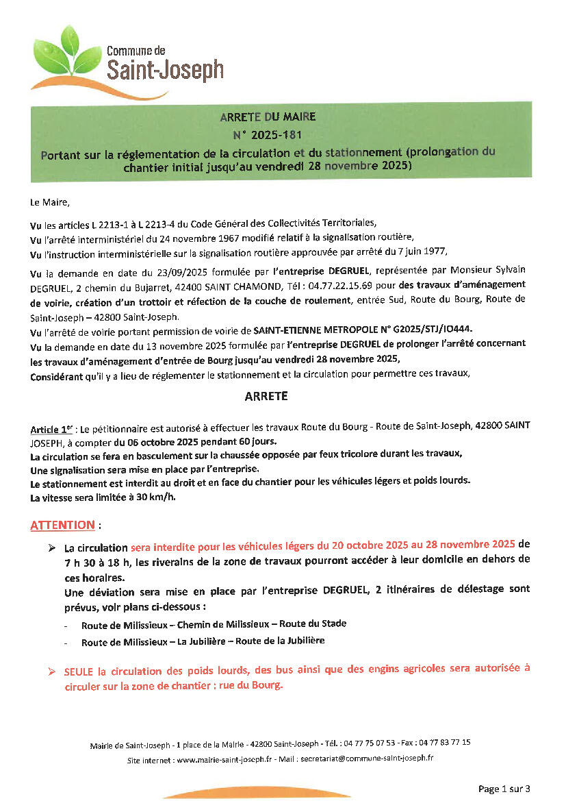 ARRETE 2025-148 - Travaux route de St-Joseph