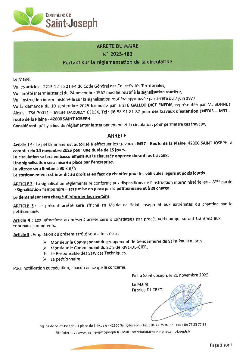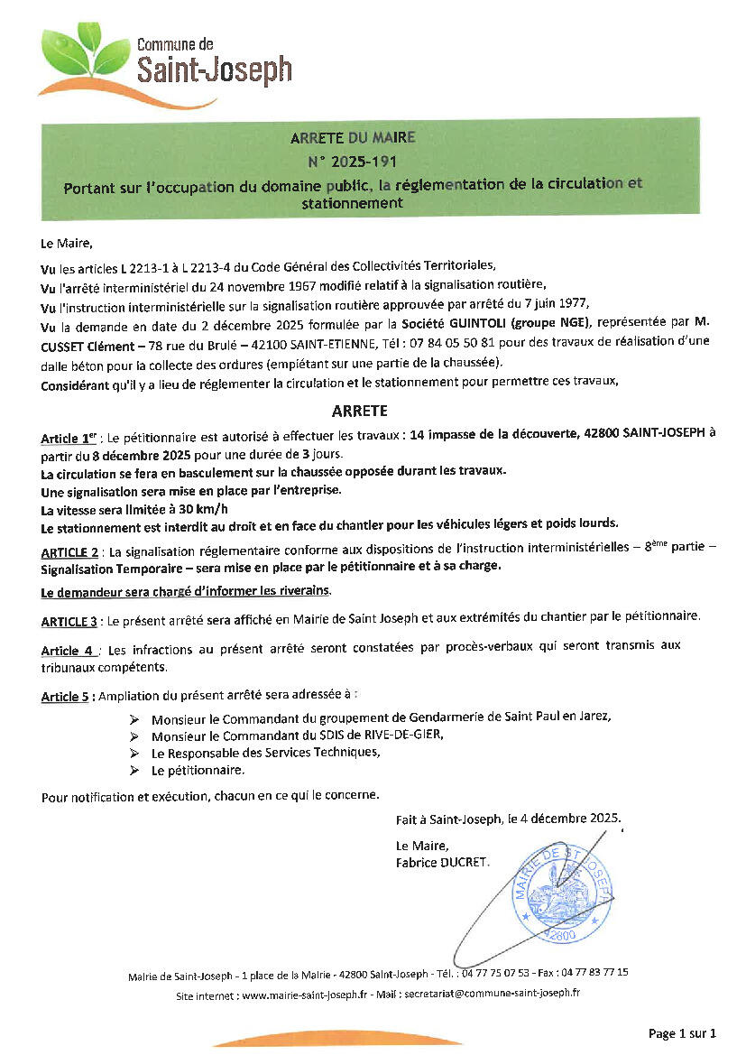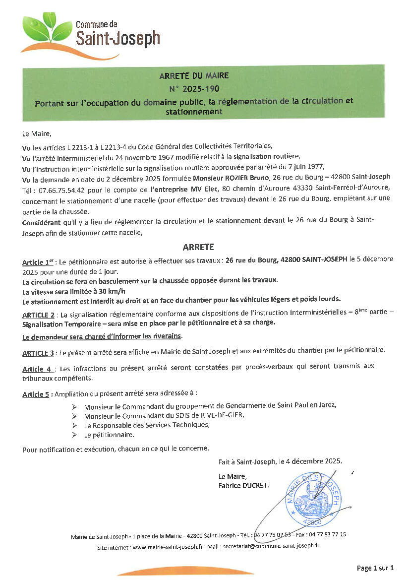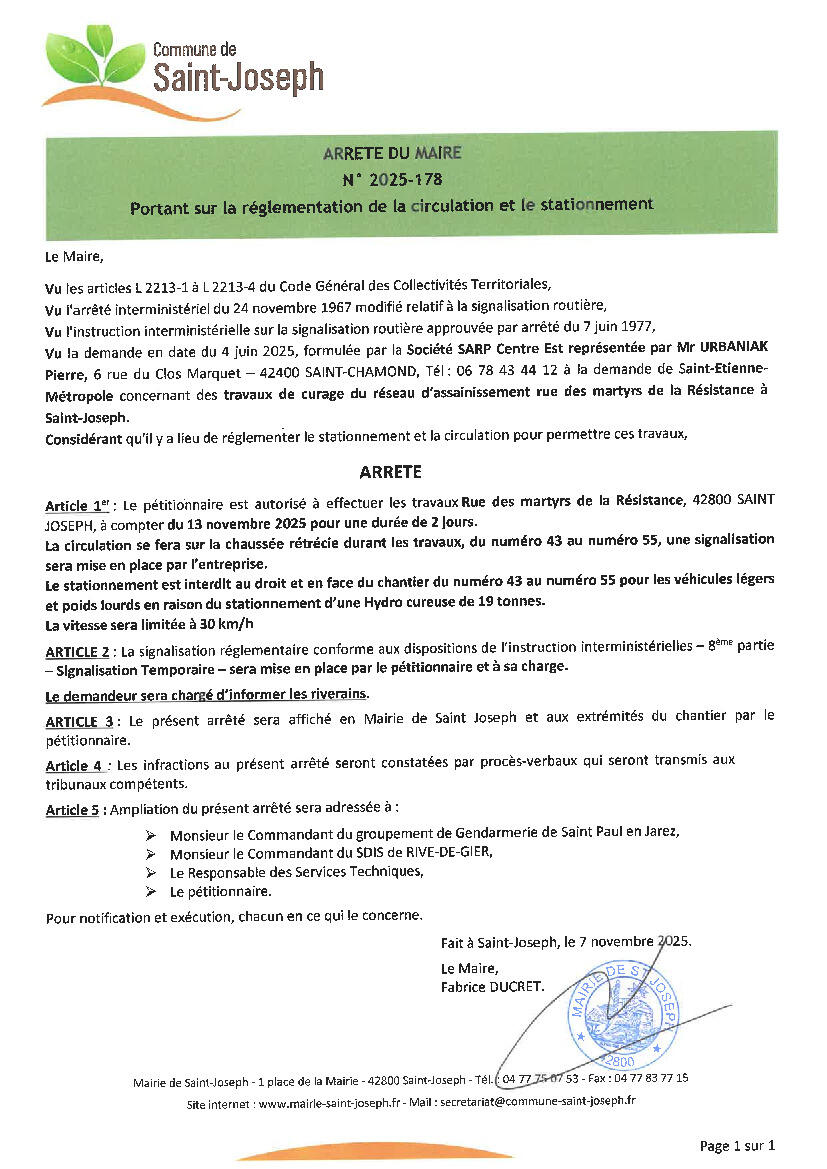 ARRETE 2025-148 - Travaux route de St-Joseph