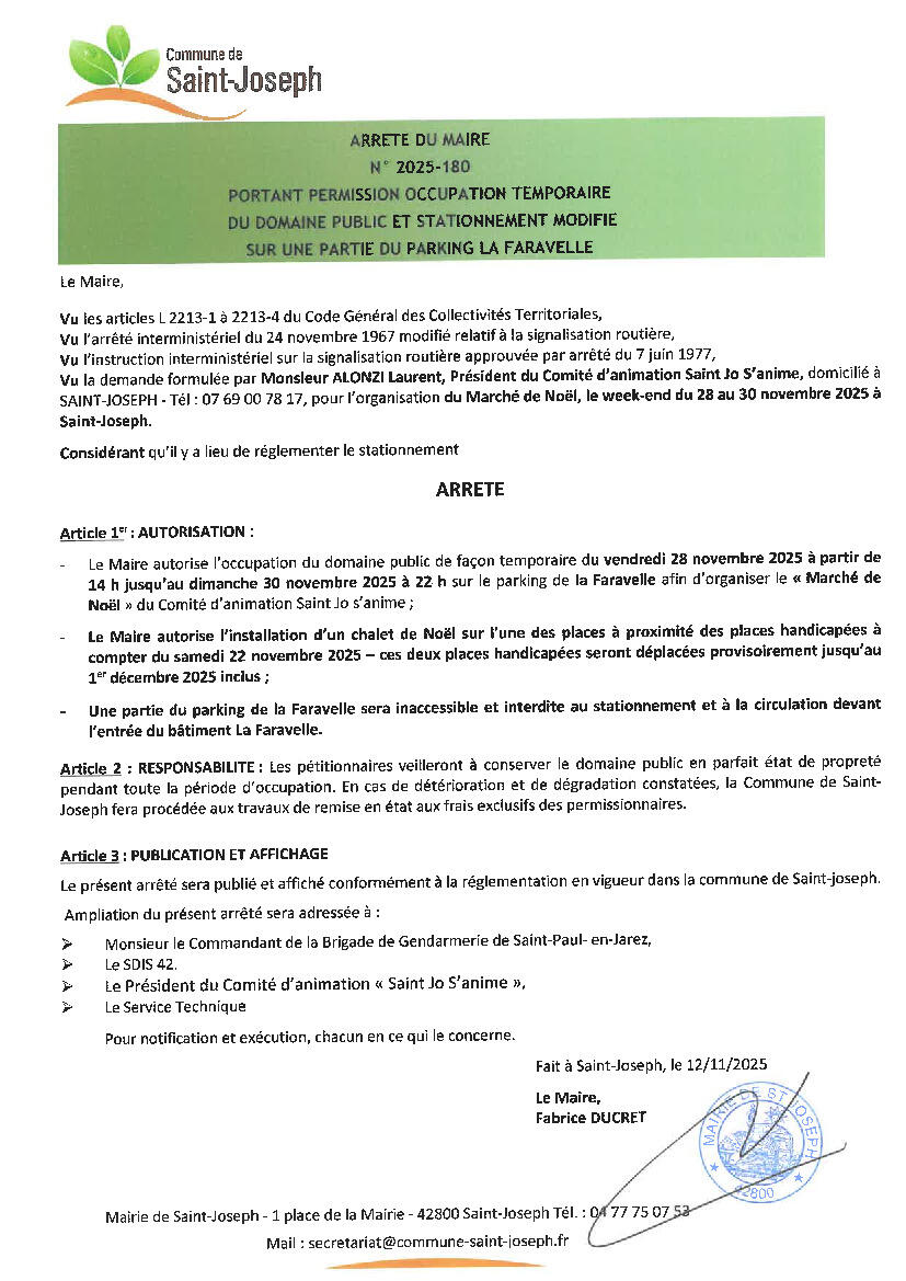 Arrêté 2025-180 Occupation du domaine public-Marché de Noël
