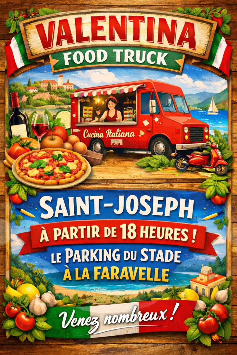 Bonjour, chers clients de Saint-Joseph, le valentina food truck sera dans votre commune ce soir. passer une agréable journée
