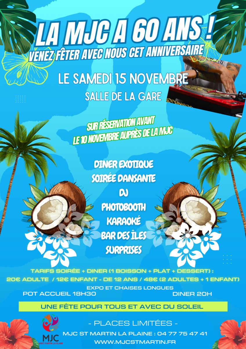 Pour fêter sa 60ème bougie, la MJC vous invite le samedi 15 novembre pour une soirée à ne pas manquer !