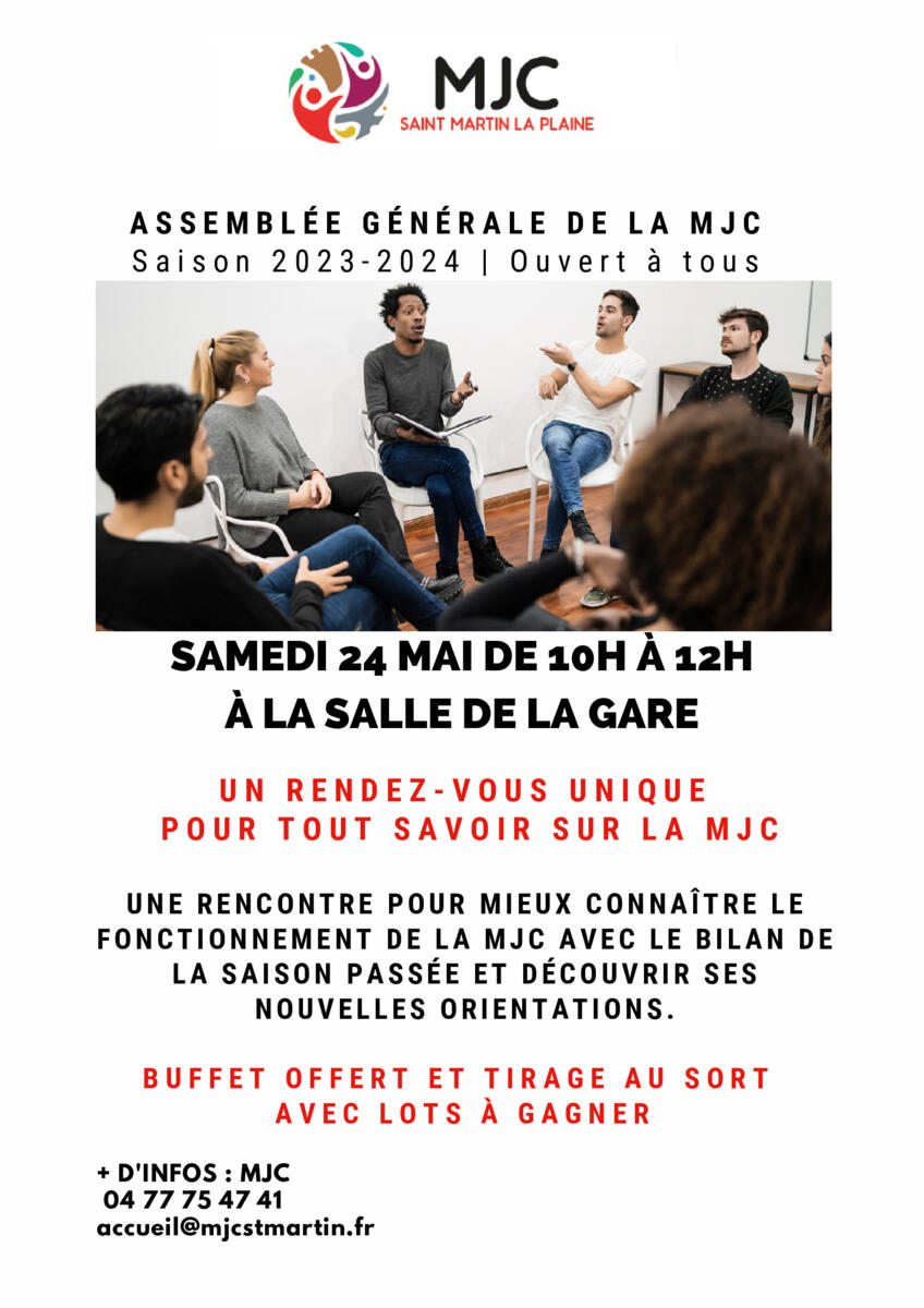 Assemblée Générale de la MJC - samedi 24 mai matin 15/05/2025 Bilan saison passée, buffet offert et lots à gagner