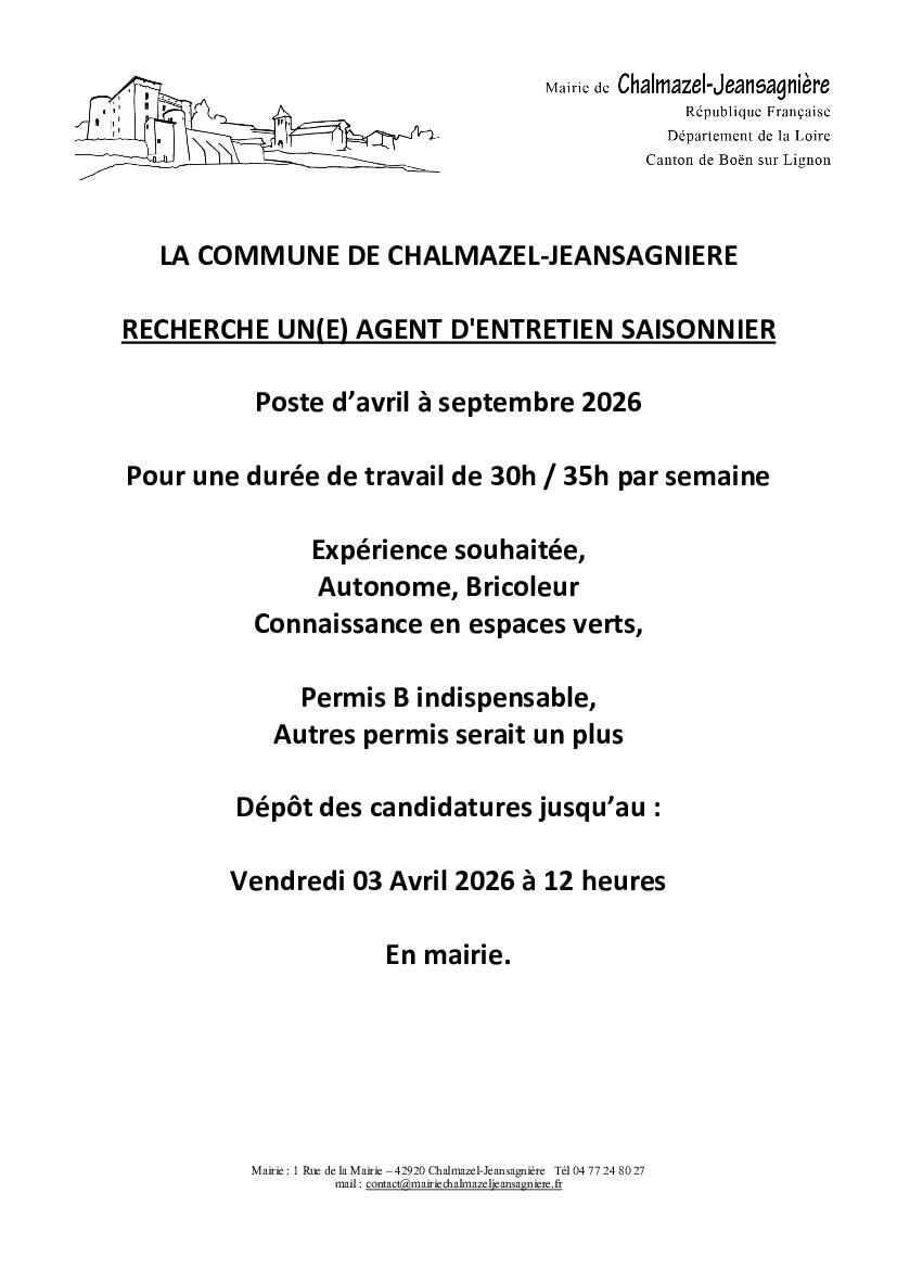 Votre mairie / Actualités / Offre d'emploi saisonnier