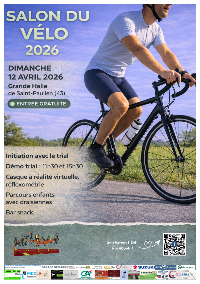 • Salon du Vélo 2026 : entrée gratuite, démos trial, stands, animations enfants, buvette.
