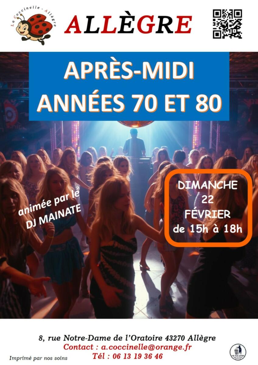 - Après-midi "années 70-80" dimanche 22 février de 15h00 à 18h00.