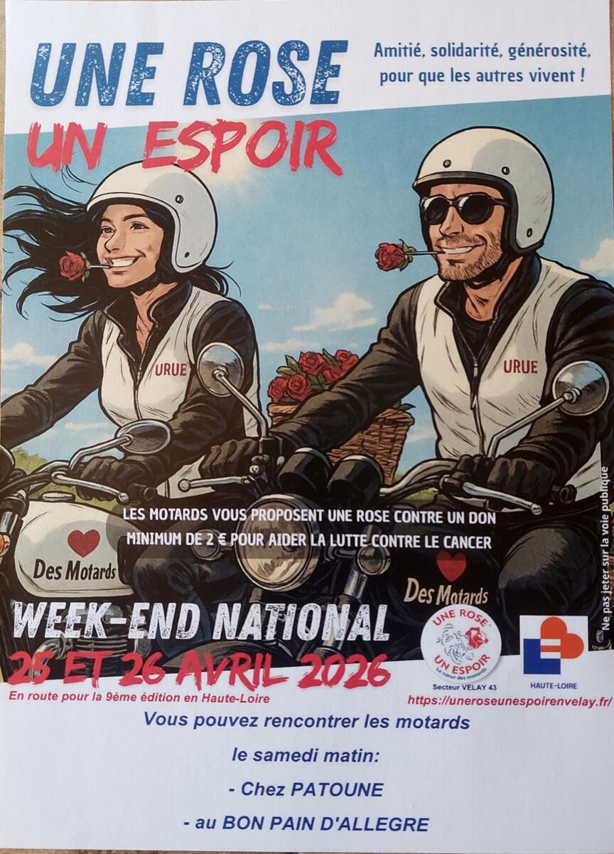 Le week‑end national « Une Rose, Un Espoir » revient en Haute‑Loire pour sa 9ᵉ édition. Comme chaque année, les motards sillonnent les routes du territoire pour proposer une rose en échange d’un don minimum de 2 € au profit de la lutte contre le cancer.