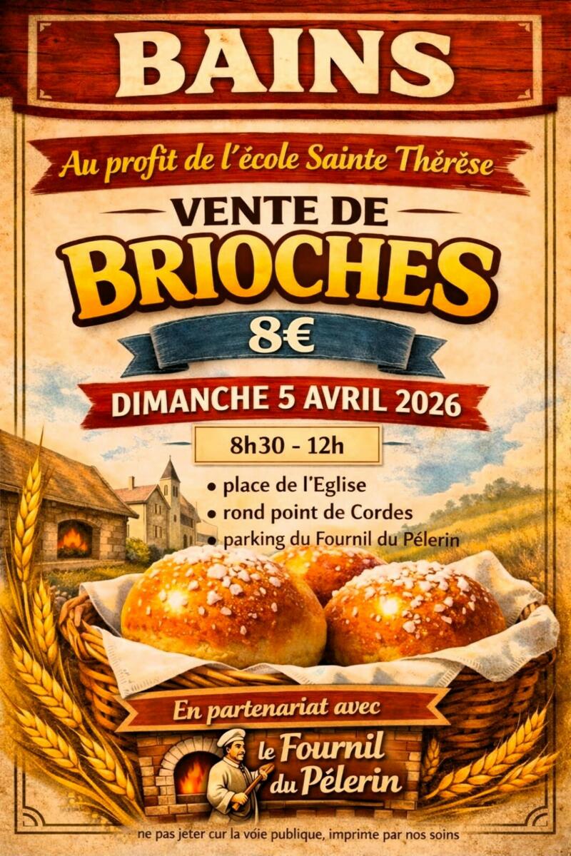En partenariat avec la boulangerie de la Commune « Le Fournil du Pèlerin », l’Association des Parents d’Elèves de l’école Sainte-Thérèse organise sa traditionnelle vente de brioches le dimanche 5 Avril (dimanche de Pâques) de 8h30 à 12h00.