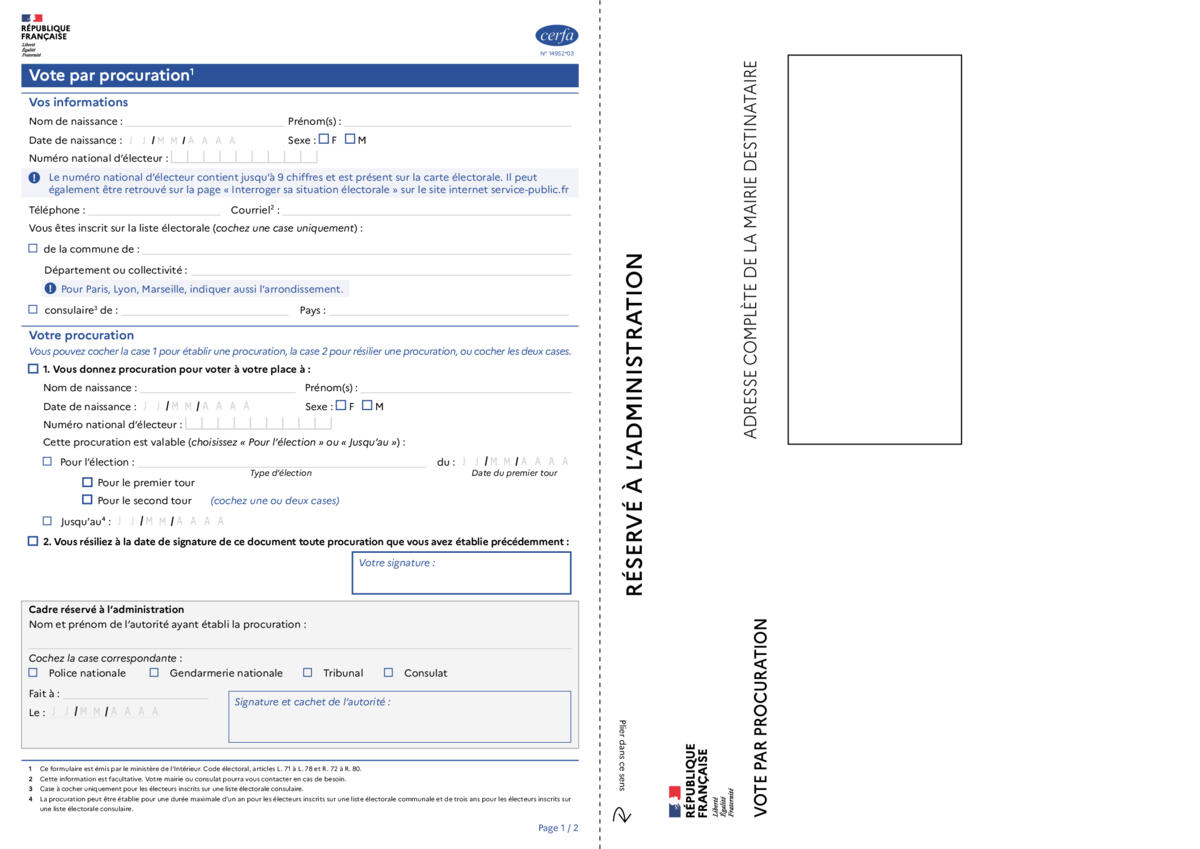 - Vous disposez d'une identité numérique certifiée via France Identité, vous pouvez alors effectuer votre procuration sur www.maprocuration.gouv.fr