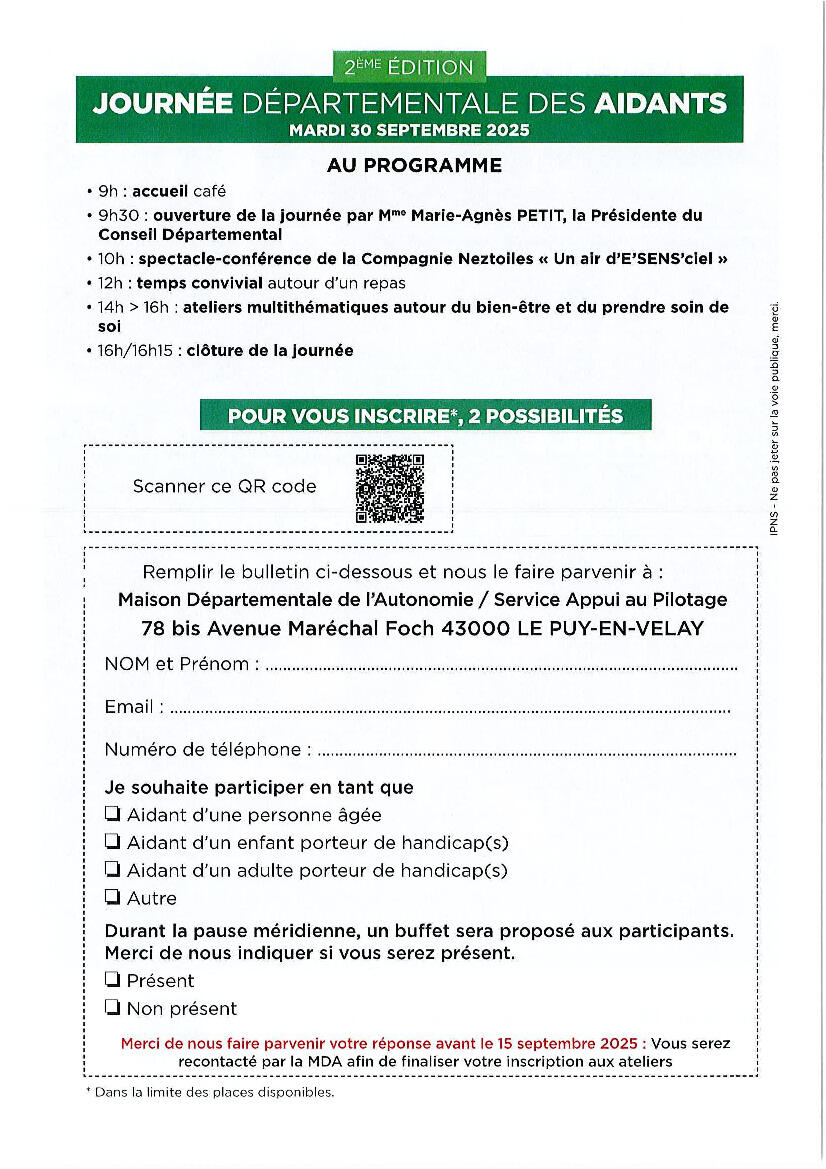 Votre mairie / Actualités / 2ème édition : Journée Départementale des Aidants