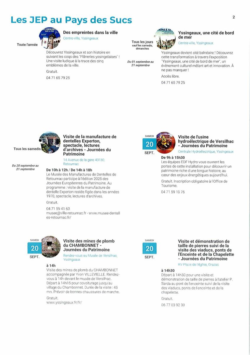Votre mairie / Actualités / Journées Européennes du Patrimoine 2025 au Pays des Sucs!