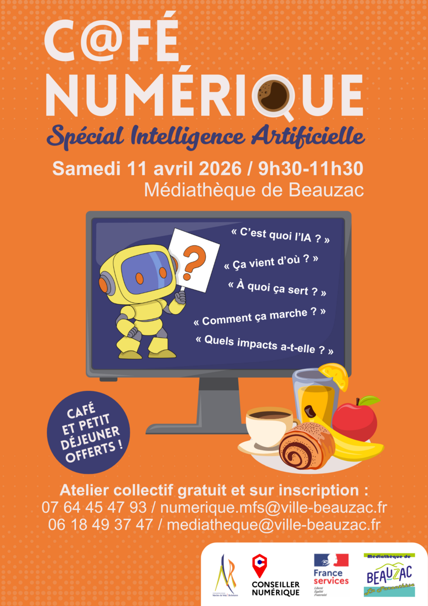 🤖 À cette occasion, participez à un Café numérique dédié à l’Intelligence Artificielle le samedi 11 avril 2026 à 9h30 à la médiathèque de Beauzac.