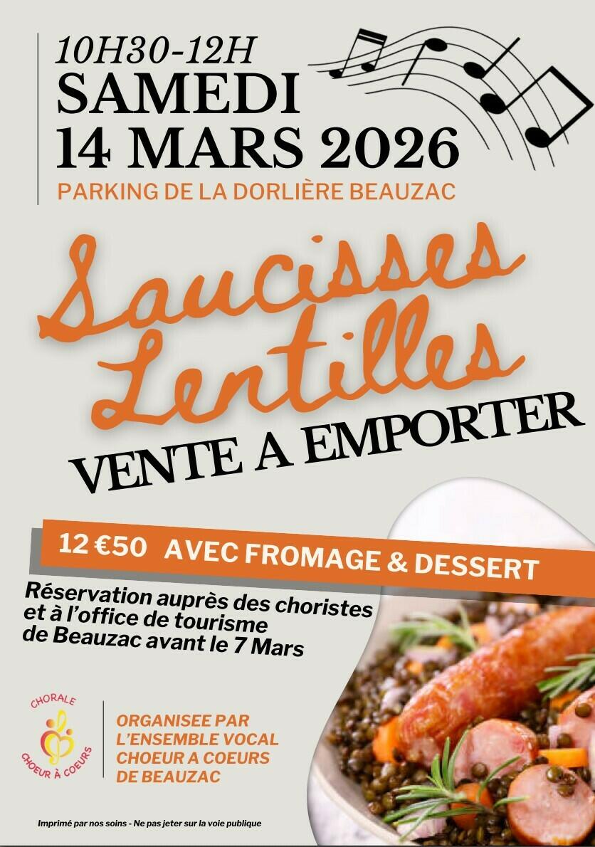 Votre mairie / Actualités / VENTE A EMPORTER SAUCISSES LENTILLES 🍽