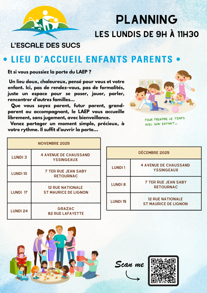 Planning d’ouverture du LAEP l’Escale des Sucs