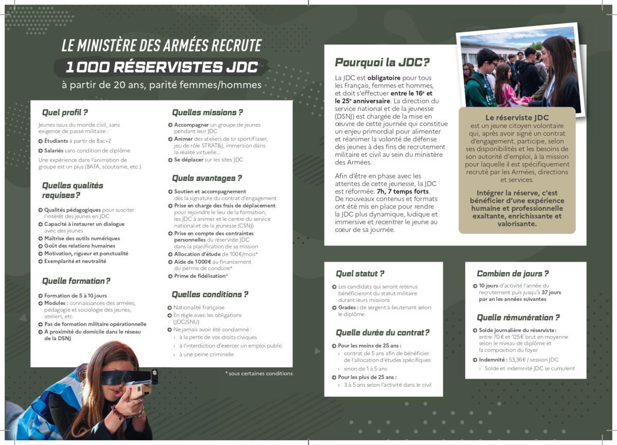 Le Centre du Service national et de la jeunesse de Clermont-Ferrand poursuit son recrutement de réservistes afin de renforcer ses équipes d’animateurs-accompagnateurs lors des Journées Défense et Citoyenneté.