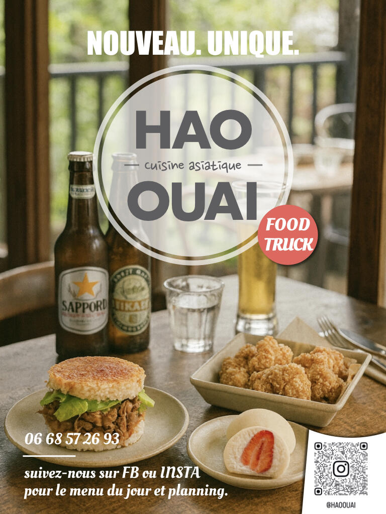 Camion Food Truck "Hao Ouai" - Présent Ce Soir 26/02/2026 Le camion fook truck "Hao Ouai" sera présent une semaine sur deux, les semaines impaires.