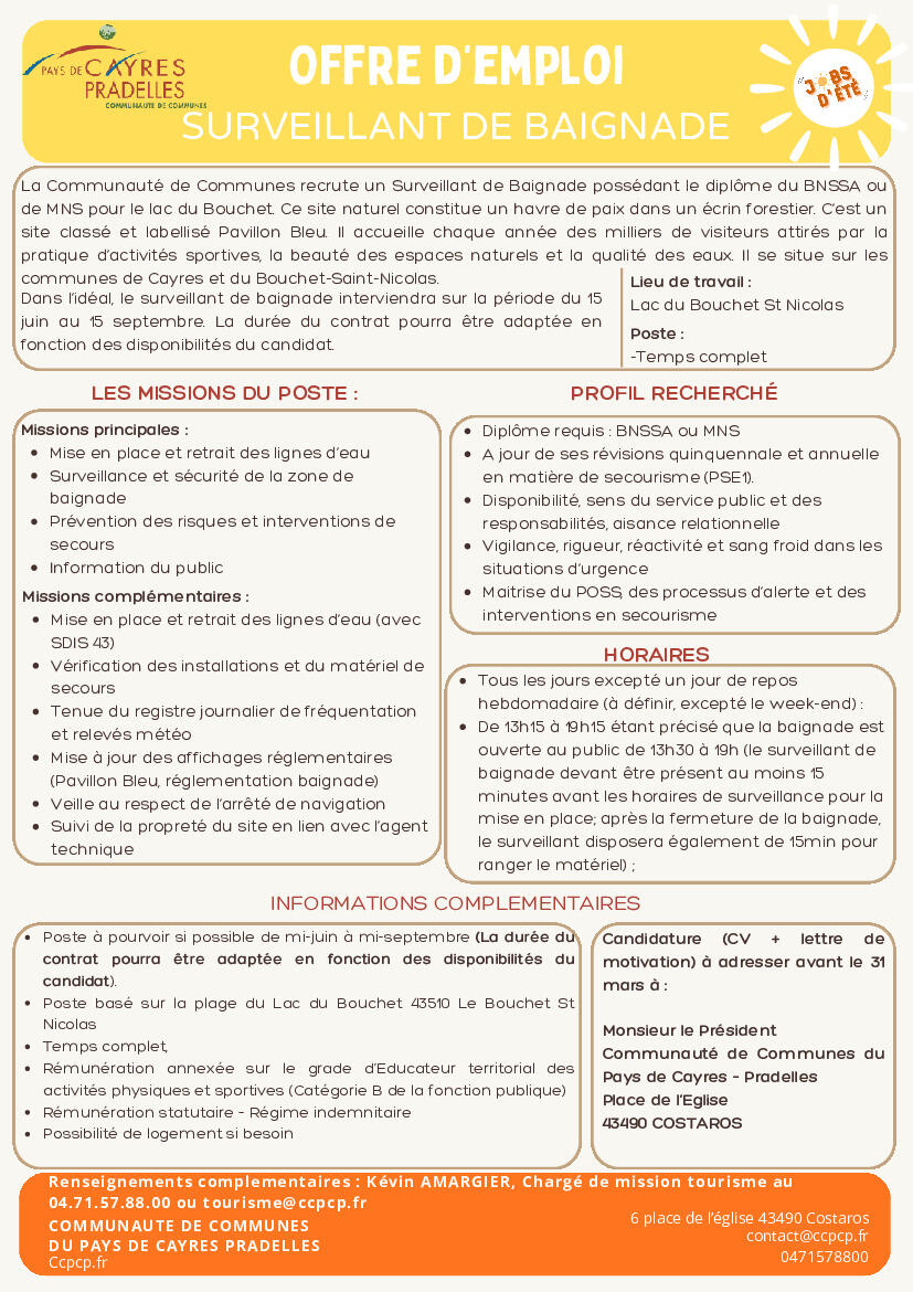 Offre emploi - Surveillant de Baignade