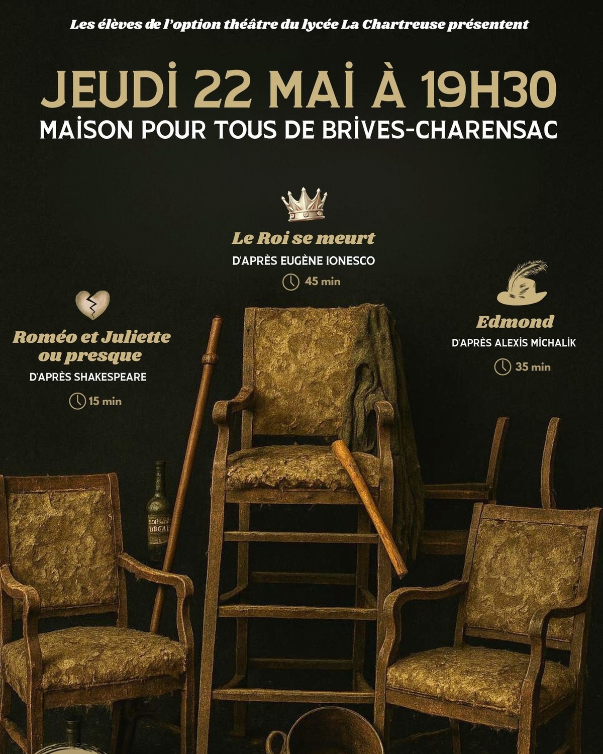 🎭 Les élèves de l'option théâtre du lycée La Chartreuse vous donnent rendez-vous le jeudi 22 mai à la Maison pour tous de Brives-Charensac pour une représentation exceptionnelle à 19h30 !