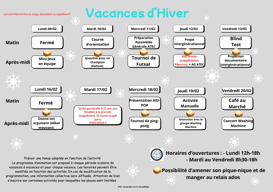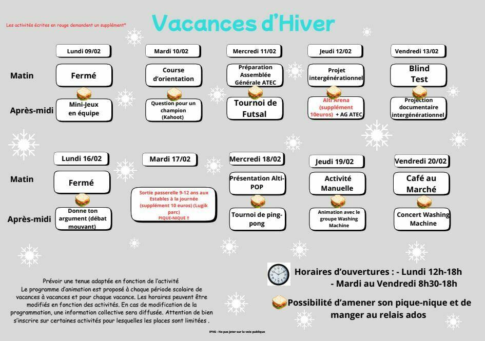 Vacances d'hiver - secteur ados inscriptions ouvertes !