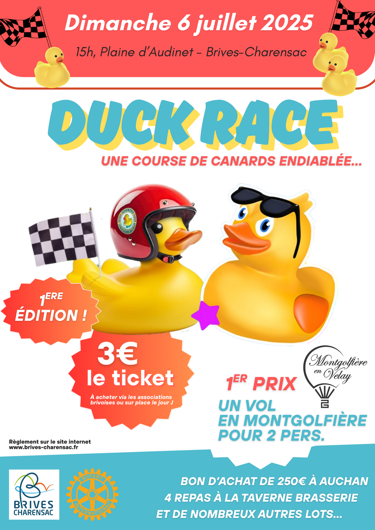 En partenariat avec la Ville de Brives-Charensac, le Rotary organise une course de canards en plastique à l'occasion de la Fête votive :