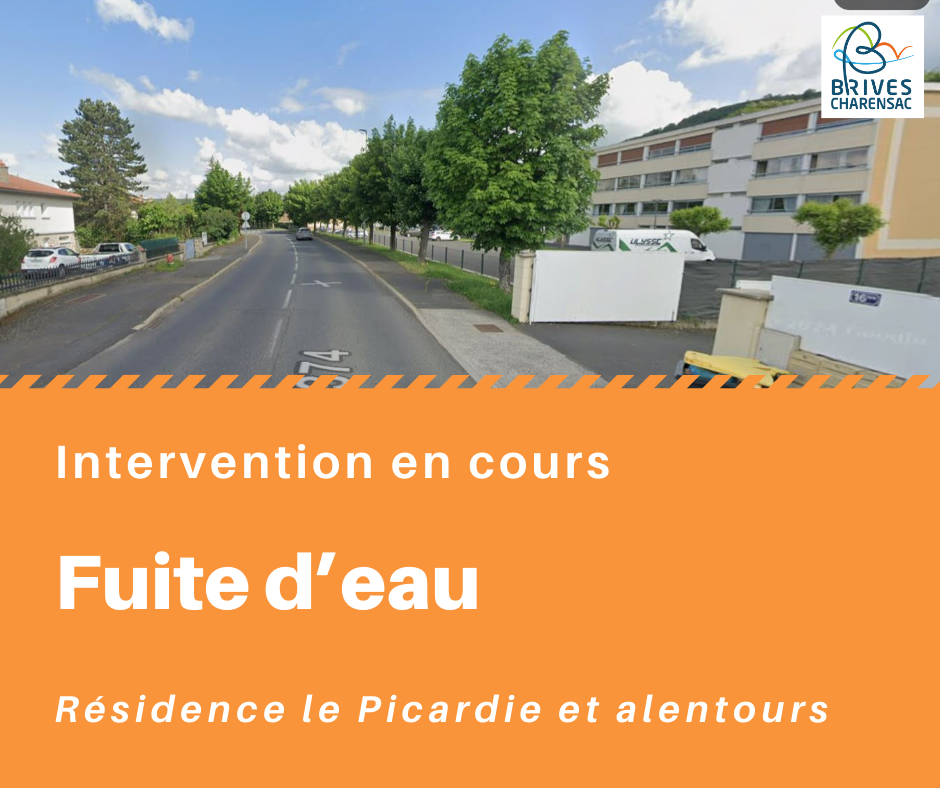 Une fuite d'eau est en cours de réparation dans le secteur des immeubles du Picardie et des alentours.