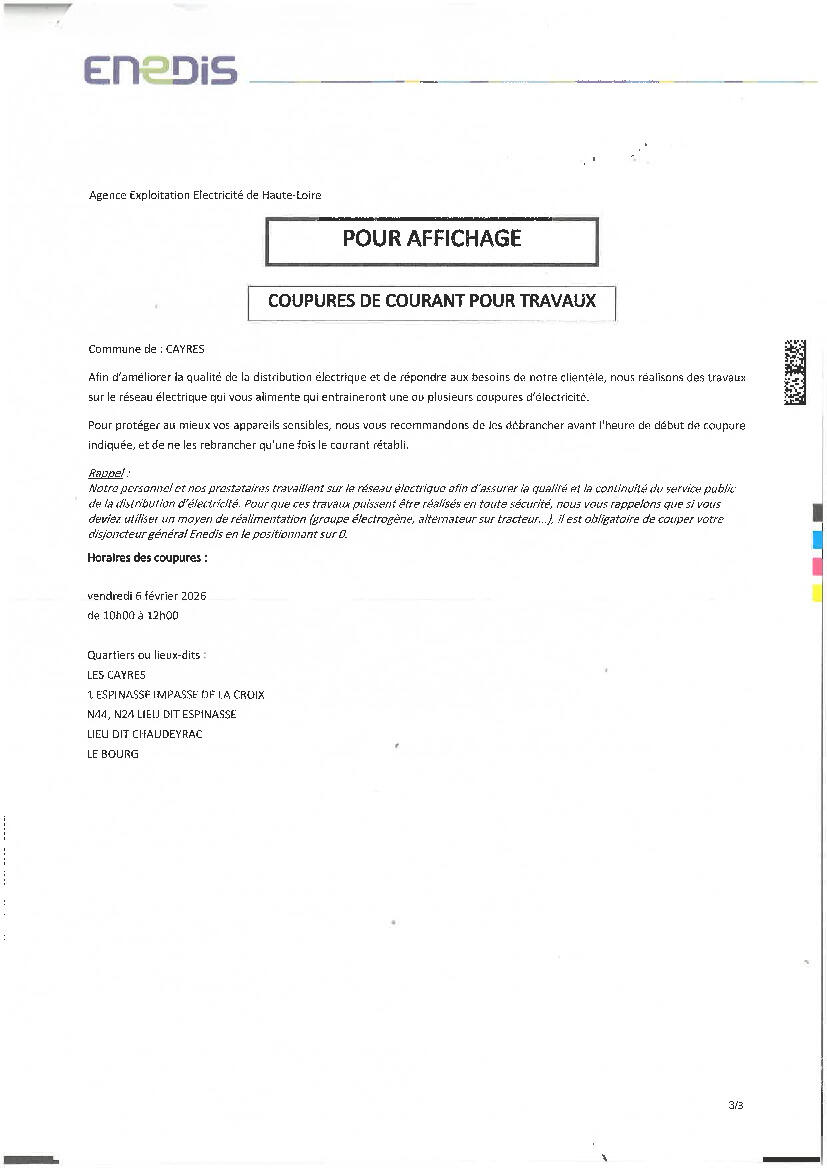 COUPURES PROGRAMMEE D'ELECTRICITE - CAYRES
