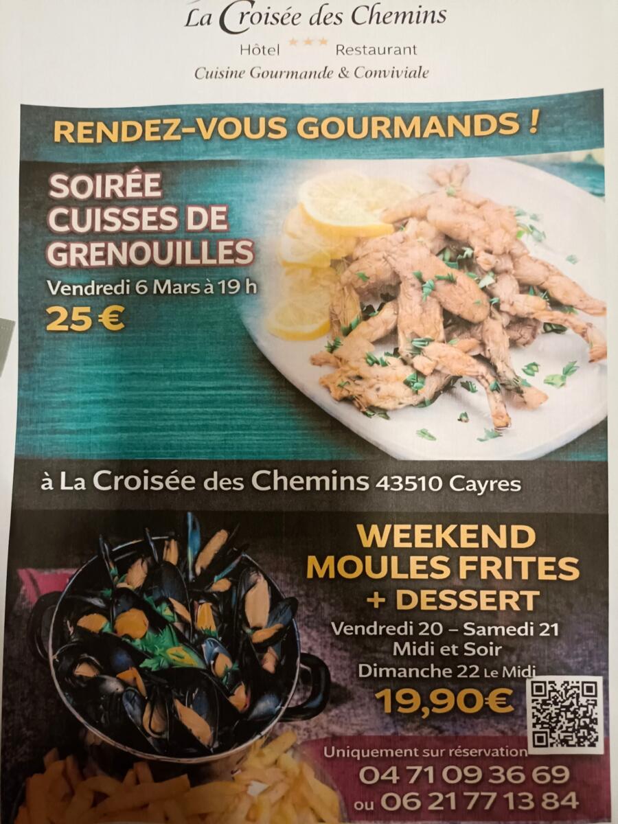 Vendredi 6 mars, à partir de 19 heures vous pouvez déguster les cuisses de grenouilles au Restaurant La Croisées des Chemins.