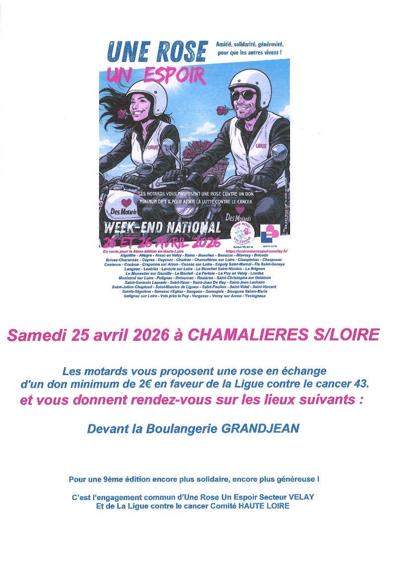 SAM. 25 AVRIL : UNE ROSE, UN ESPOIR, AVEC LES MOTARDS !