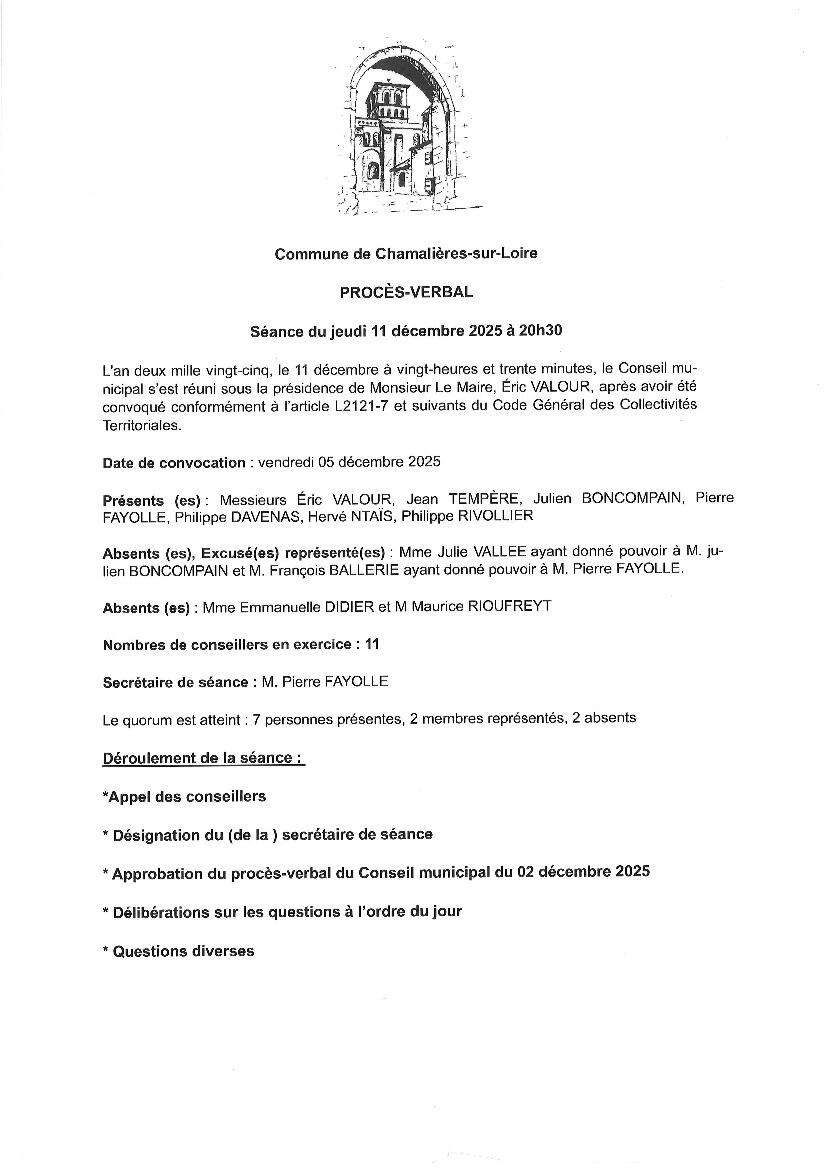 Compte-Rendu Du Conseil Municipal Du 11 Decembre 2025 24/12/2025 Veuillez trouver ci-joint le compte rendu du conseil municipal du jeudi 11 décembre 2025. Vous pouvez également le retrouver en page d'accueil du site internet de la commune. A bientôt !