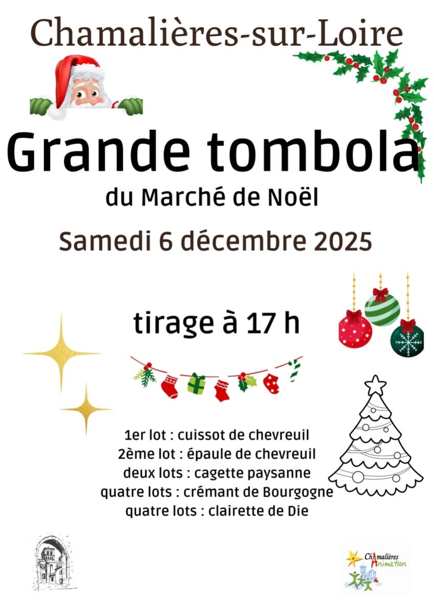 Le Marché de Noël de Chamalières-sur-Loire se tiendra, en musique, le samedi 6 décembre, de 10h à 18h, dans la salle polyvalente. De nombreuses animations vous attendent. Une grande tombola est également organisée (tirage à 17h). Vous trouverez toutes les informations utiles sur l'affiche jointe. Organisé par Chamalières-Animation en partenariat avec la municipalité.