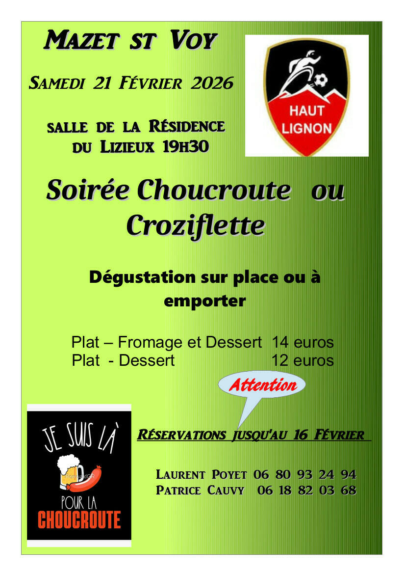 21 février 2026 : Soirée CHOUCROUTE/CROZIFLETTE