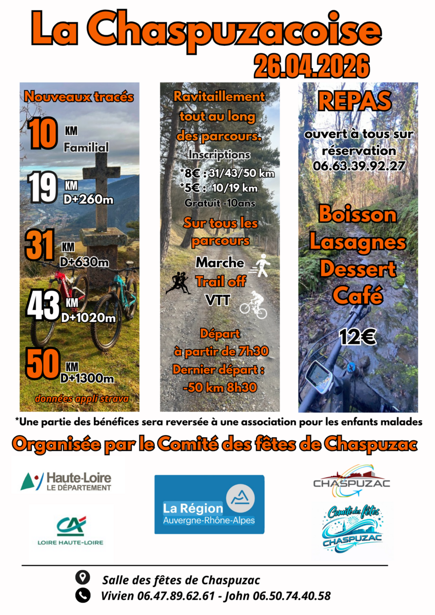 Deuxième Edition pour la Chaspuzacoise, proposée le dimanche 26 avril par le comité des fêtes de Chaspuzac.