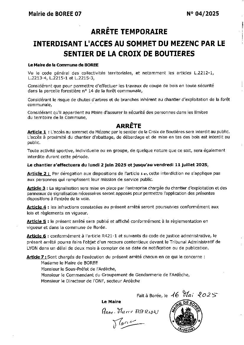 Votre mairie / Actualités / Accés au sommet du Mézenc