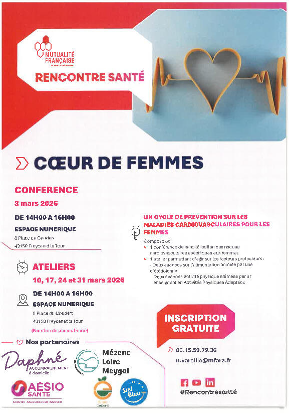 Coeur de Femmes 17/02/2026 Cycle de prévention sur les maladies cardio-vasculaires pour les femmes Inscription gratuite