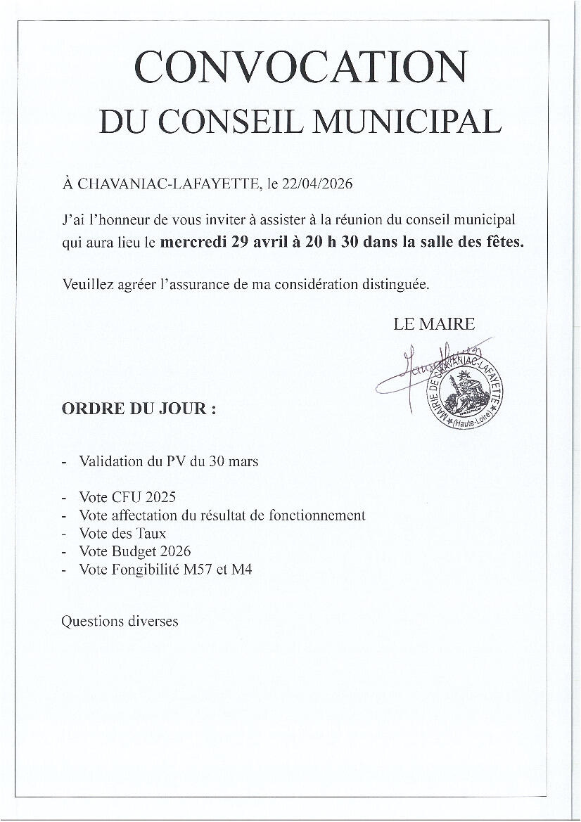 Toute l'actualité de Mairie de Chavaniac-Lafayette