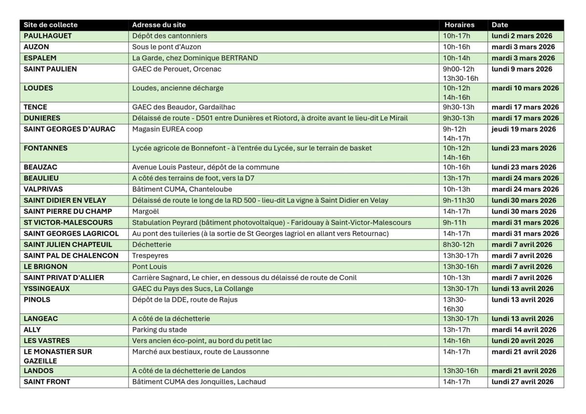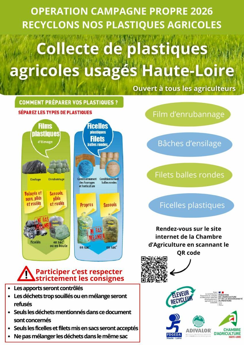 L'opération Campagne Propre de la Chambre d'Agriculture de Haute-Loire débute ce 2 mars sur notre territoire avec la collecte de plastiques agricoles :